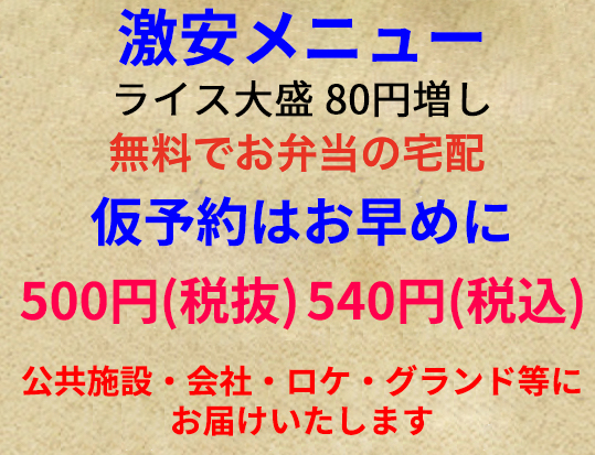 物価高騰に対抗びっくり価格‼️500円(税抜) ※ワンコイン弁当
