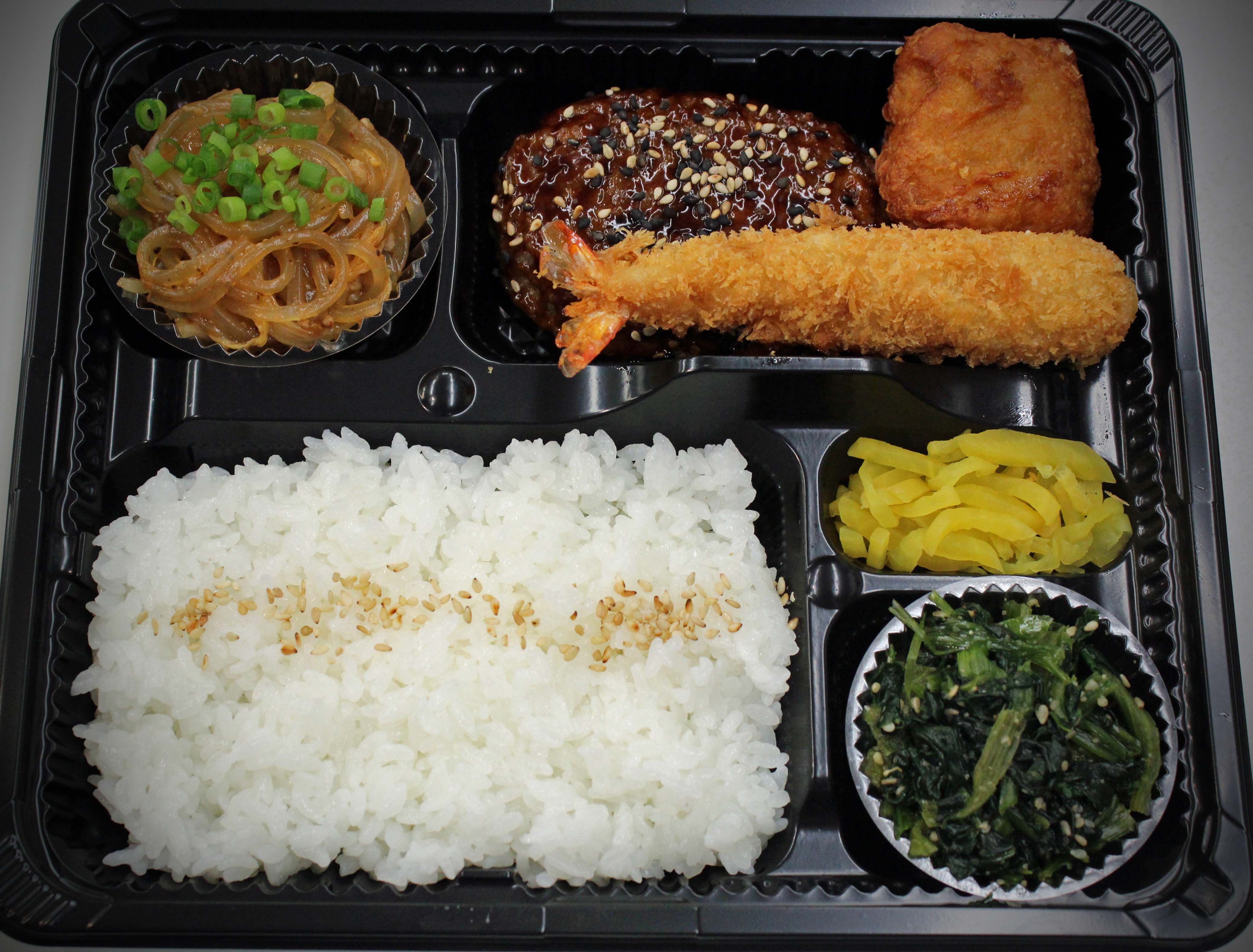 - (超人気 自慢の看板メニュー) ※豊富な品揃え・彩り良く・美味しいバランスのとれた9マス弁当 ※一部のメニューの内容と価格を変更致しました
